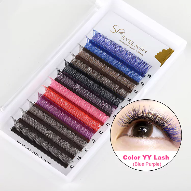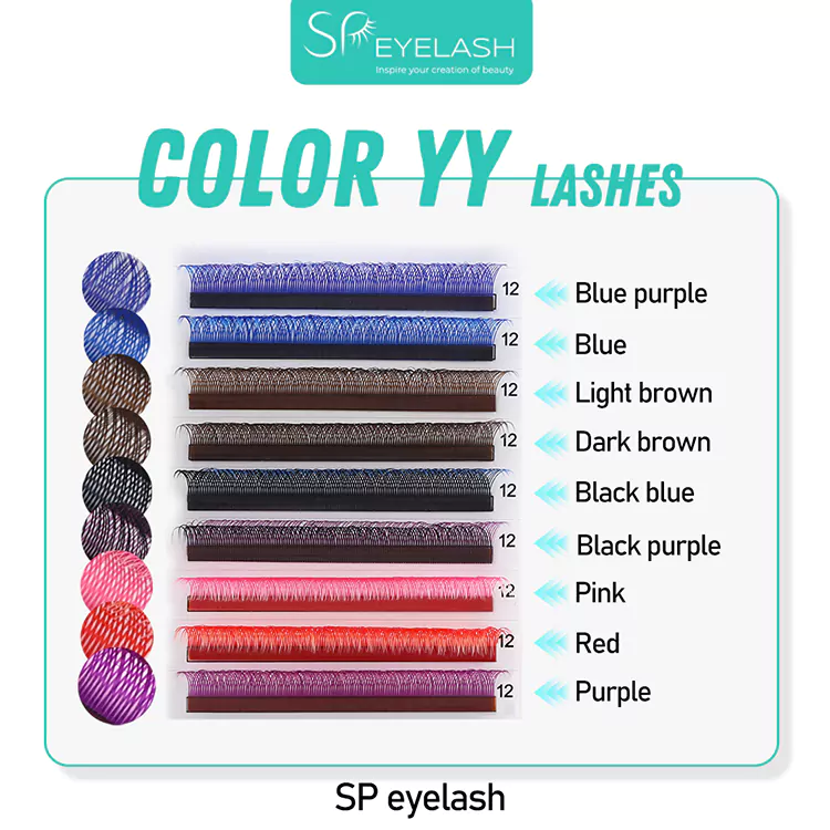 Hver YY -fan, der består af fire individuelle vipper på 0,07 tykkelse, intrikat flettet ved basen, skaber et markant, krydset udseende og farverig effekt.