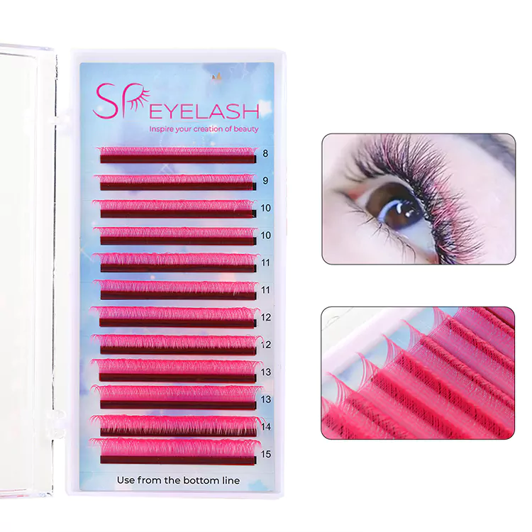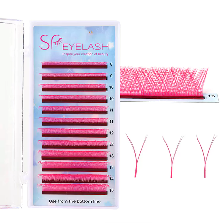 Pink yy -vipper kommer i forskellige længder, der typisk spænder fra 8 mm til 15 mm, for at imødekomme forskellige vippestilarter og præferencer. For indre og ydre hjørner kan du prøve at bruge kortere vipper som 8 mm til 10 mm og for den midterste del, vælg 10-12 mm og den længste AS 13 mm. Længder på 14 og 15 mm kan bruges, når klienter foretrækker virkelig dramatiske og lange vipper.