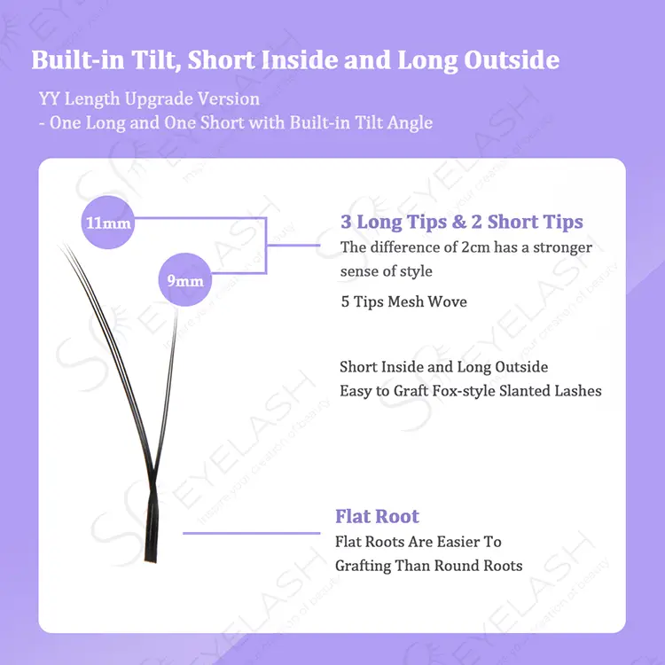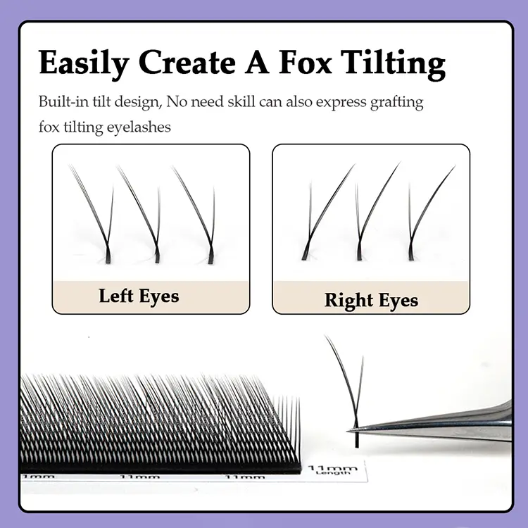 SP Eyelash Slant Flying Yy Eyelash's Innovative Fox Eye Design bruger 5-punkts mesh-vævningsteknologi, naturligt forlænger øjenhalen gennem fordelingen af 3 lange og 2 korte øjenvipper. 0,07 mm ultra-fine fiberbasen sikrer fluffiness uden at vises tung, hvilket giver 8-15 mm længdeindstillinger parret med C/D/J/M/L-krøller for at imødekomme forskellige behov fra bare til tung makeup. Den unikke sølvfoliebasisdesign gør hårfjerning mere praktisk, og det matchende kort indikerer tydeligt parametrene, hvilket forbedrer effektiviteten af øjenvasketeknikernes operationer.